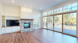 Nestled on the tranquil Crystal River just outside beautiful Glen Arbor, this thoughtfully designed 3-bed, 3-bath home blends warmth, sophistication, and functionality in every detail. At just under 3,000 sq ft, it features rich hickory and walnut accents, a custom kitchen, and expansive views of the serene river from the open-concept living space. The main living area boasts a two-sided gas fireplace, built-in dining benches, and massive doors that lead to a deck overlooking the water—perfect for relaxing or entertaining.